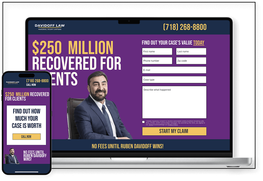 Take control of the types of clients you bring in. Whether you want more rideshare accidents, workplace injuries, defective product claims, or other profitable practice areas, our system puts your firm in front of people searching for the exact help you provide. Instead of wasting time on low-quality inquiries, you’ll attract only the cases you want, delivered directly into your intake process so you can focus on converting them into signed clients.