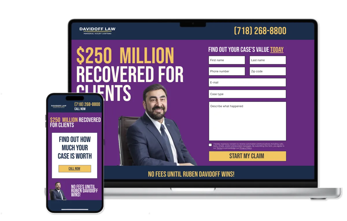 We create high-converting landing pages and drive qualified traffic through highly targeted advertising campaigns. Our approach ensures that the right people: those actively searching for legal help, find your firm quickly and take action, turning clicks into consultations.